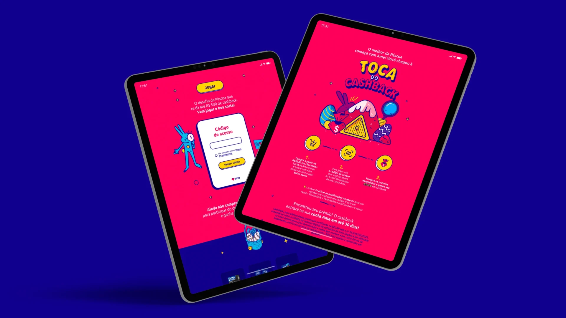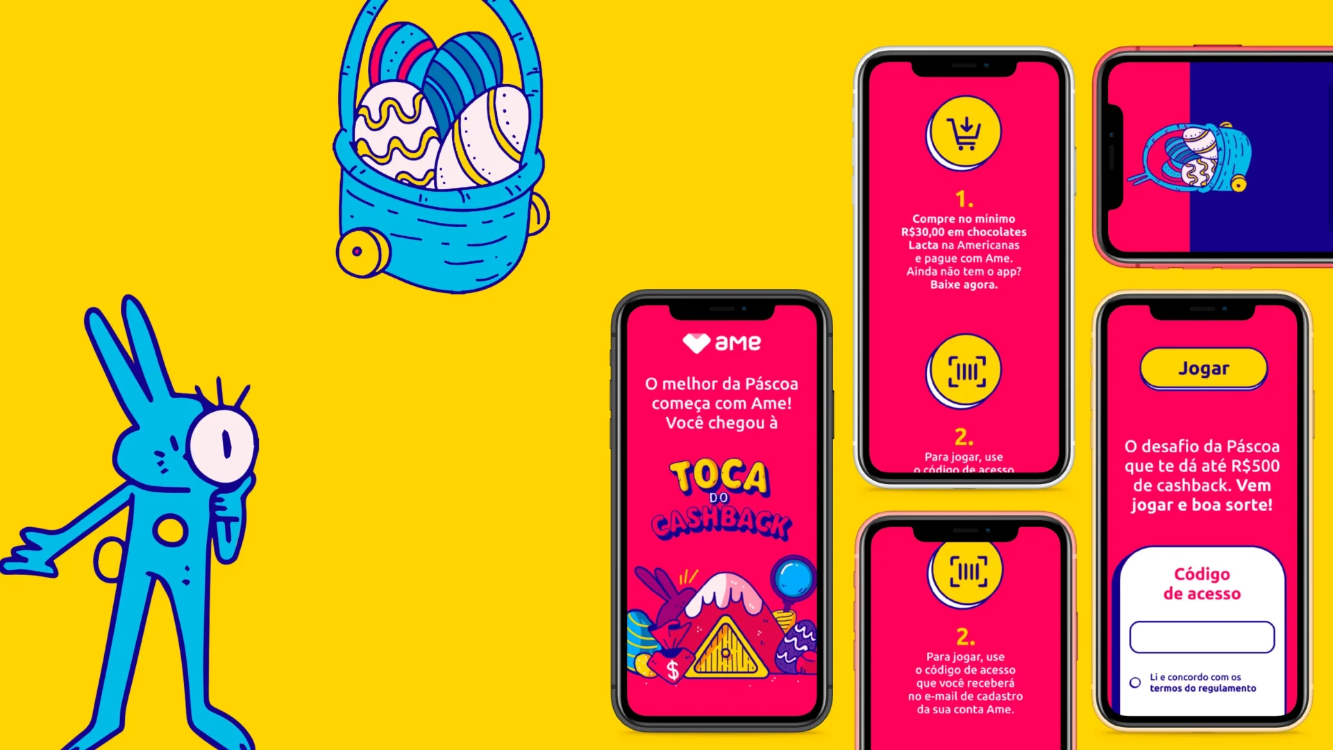 Criação de um hotsite interativo de Páscoa, incentivando os usuários a participarem de uma caça aos ovos e concorrerem a prêmios com cashback em compras de chocolates na Americanas.