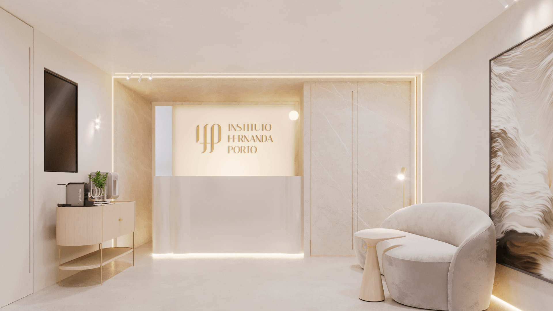 Criação de marca para o Instituto Fernanda Porto, refletindo luxo, bem-estar e a arte da estética em cada detalhe.